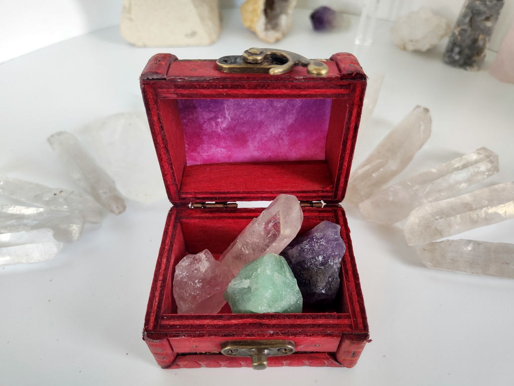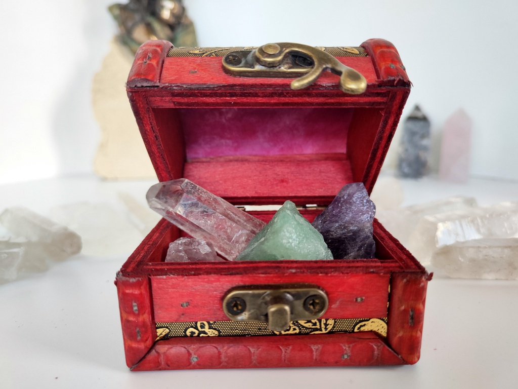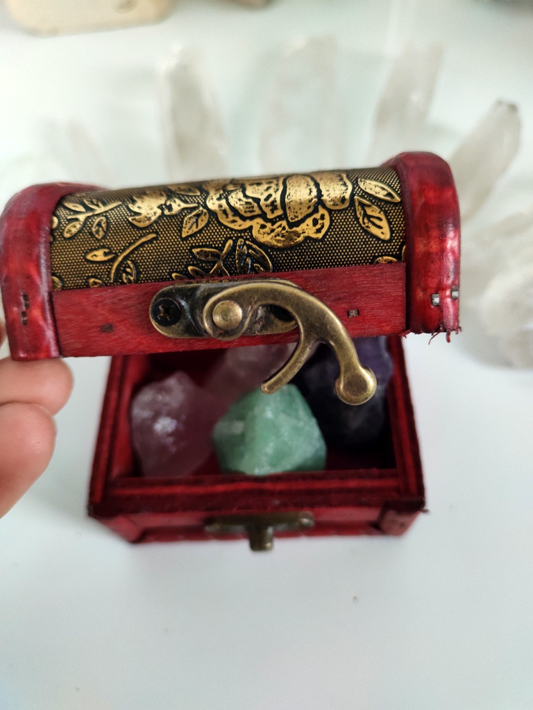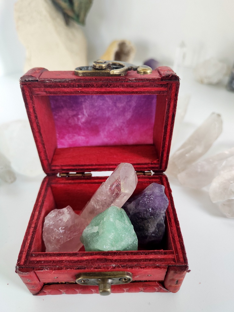 Mini skrzyneczka „Moc Mamy” to wyjątkowe połączenie surowych kryształów o magicznych właściwościach. Każdy z tych minerałów przynosi swoje unikalne energie i korzyści: