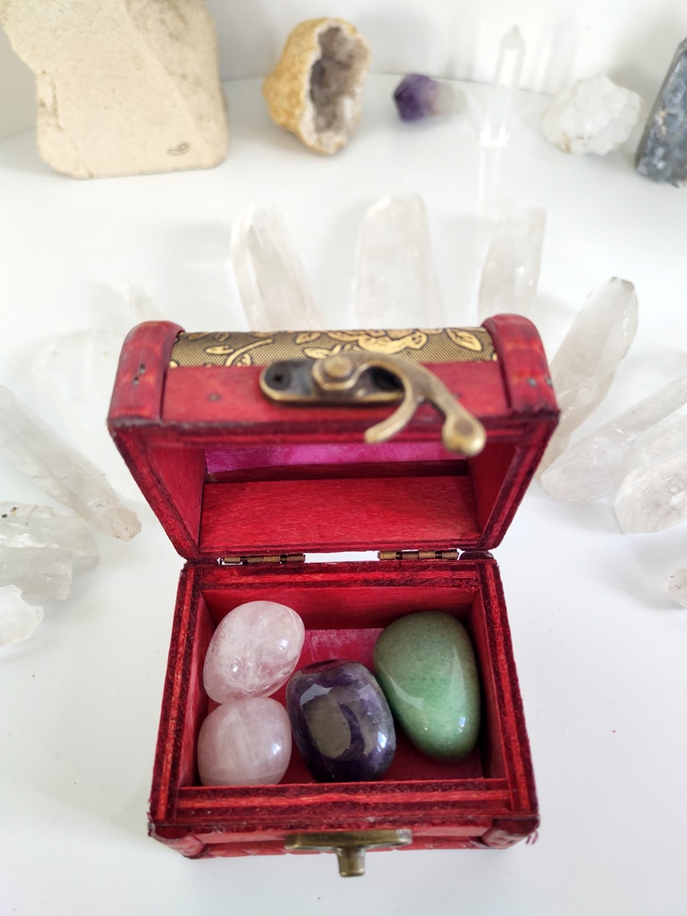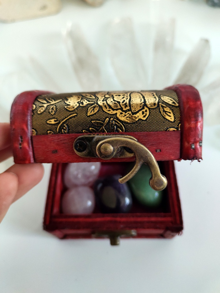 Mini skrzyneczka „Moc Mamy” to wyjątkowe połączenie polerowanych kryształów o magicznych właściwościach. Każdy z tych minerałów przynosi swoje unikalne energie i korzyści: