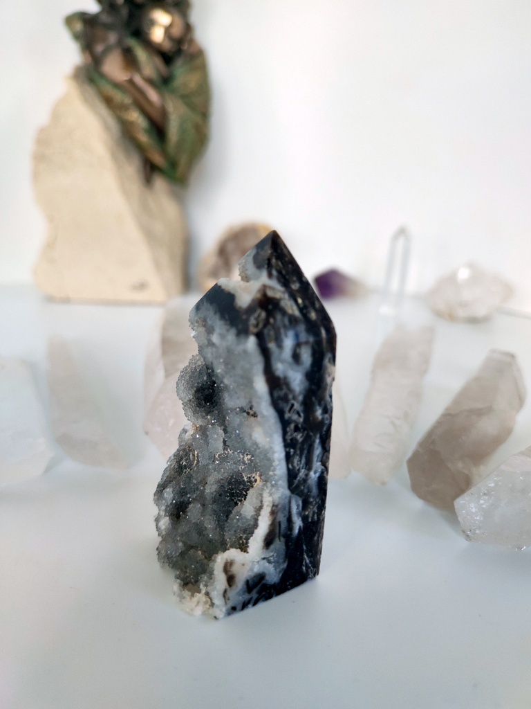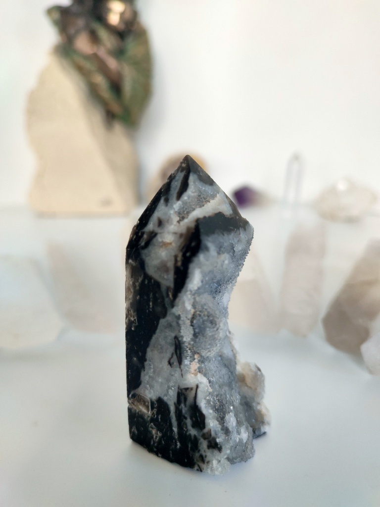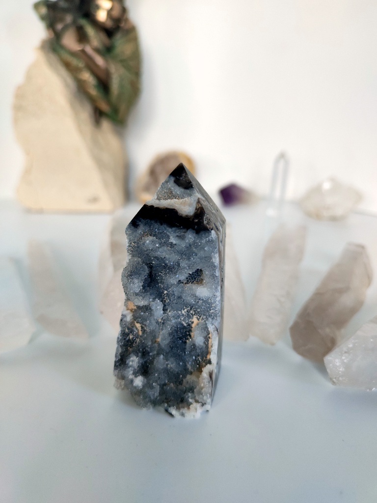 🌟💎 Sfaleryt to klucz do głębszego połączenia z energią ziemi. Jego szpiczasta forma jest jak kompas wskazujący kierunek, pomagającym odnaleźć drogę w życiowych wyzwaniach. Pozwól mu stać się Twoim osobistym katalizatorem do wzrostu, pomagającym zakorzenić się w teraźniejszości i czerpać siłę z głębin ziemi.