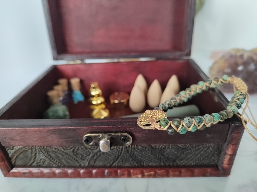 - plecioną bransoletkę z afrykańskich turkusów z motywem Drzewa Życia,
