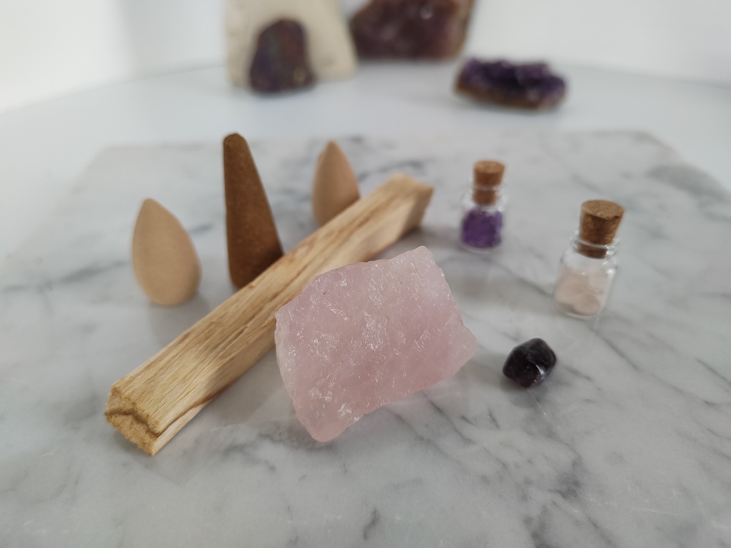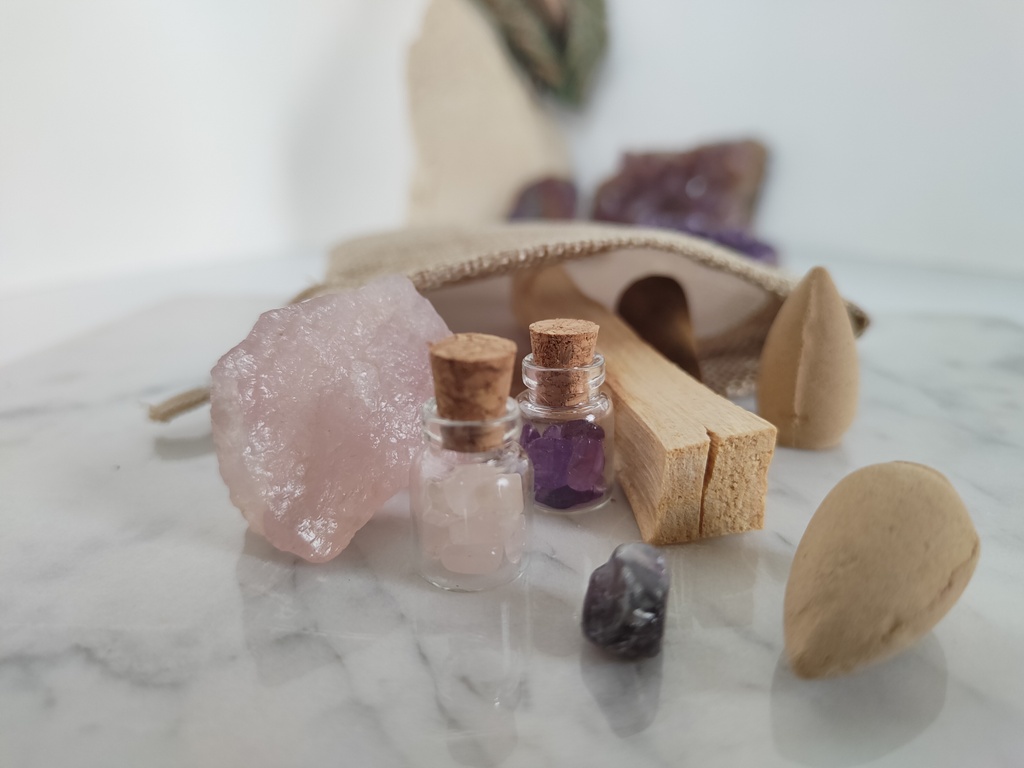 - buteleczkę z kryształkami różowego kwarcu,