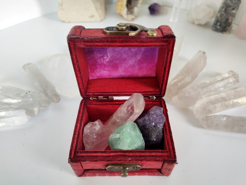 Jak? Ja mam swój, sprawdzony od lat sposób. Moje Miejsce Mocy, a w nim wyjątkowe przedmioty. Kryształy, kadzidła, figurki, biżuterię. Często poukładane w pięknych, drewnianych Skrzyneczkach Mocy.